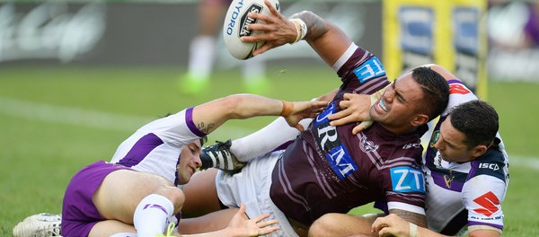In part, this was due to how deftly the Manly tries targeted and demystified the key Melbourne playmakers, as if to prove to the rest of the Sea Eagles side that the men in purple were, to quote a Daft Punk album, human after all. In the first try for the Brookvale boys, Frank Winterstein ploughed through Slater and through the subsequent tackle to ground the ball right beside the posts. In the second, Jorge Taufua dove right under Suliasi Vunivalu to land the Steeden so close to the corner that the Bunker had to be called upon to discern whether he was still in the field of play at the moment he grounded it.