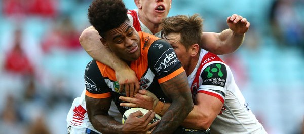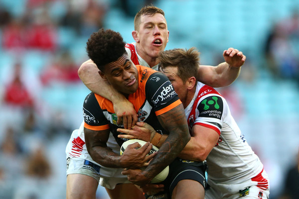 Saturday’s match at ANZ Stadium saw some fresh faces on both sides, with Gareth Widdop returning for the Dragons to put down the first twelve points of the game, Tuimoala Lolohea making his debut for the Wests Tigers, and Esan Marsters making his debut in the NRL full stop. For the most part, it was a fairly uneven contest, with St. George-Illawarra clearly dominant over the course of the afternoon, and always on the verge of busting through a fragmented and dishevelled Tigers defensive line.