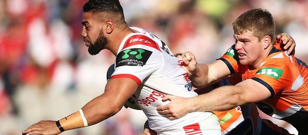 As it was, a full seven minutes of the second stanza had elapsed before the Dragons could turn the tide, when a deft short grubber from Widdop set up Joel Thompson to crash over. It was a good start, but some kind of consolidation was needed, and sure enough Josh Dugan charged through the Newcastle line a couple of minutes later, carrying four or five Knights defenders with him before grimly slamming the Steeden down over the line.