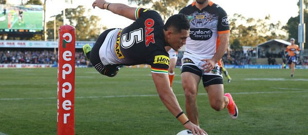 In order to stay in the game the Tigers had to come up with something special, and so they did, with Nofoaluma putting down his second successive try one minute out from the break off the back of a deft right step and flick pass from Esan Marsters just as Tyrone Peachey was bringing him to ground. One minute before, it had looked as if the Panthers might be about to score again, so it was a great shift in momentum for the Tigers as well as a reaffirmation of Nofoaluma as one of their most reliable and responsible players.
