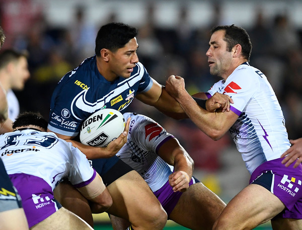 The game had an added emotional charge in that this might well be the last time that Johnathan Thurston and Cameron Smith play against each other, although their opening welcome on the field was immediately subsumed into a pretty desperate game for both sides. In a bad omen for North Queensland, Thurston took a penalty kick early on, only for it to bounce off the left upright and back onto the field, where Young Tounamipea came up with it, resulting in a Melbourne set of six that saw Jason Taumalolo flattened by Nelson Asofa-Solomona at the other end of the field.