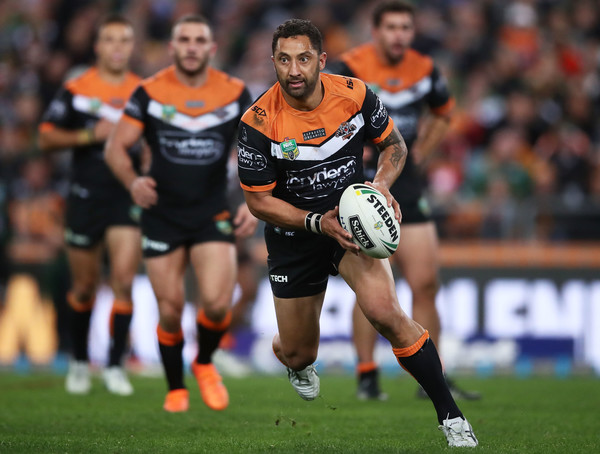 Thanks in part to Farah’s rigour, the Tigers were on fire straight out of the tunnel, notching up four linebreaks by the twelfth minute, most of them right up through the South Sydney ruck. Their first points came after Moses Mbye cleaned up a pair of spiralling bombs from Adam Reynolds, and a quick tap from Luke Brooks sent him clean through the line. A huge tackle from Sam Burgess momentarily downed Ben Matulino, but the ex-Warrior got up just as quickly, setting the stage for a game where the Tigers’ ability to bounce back would be as important as their impeccable defence.