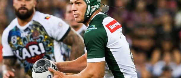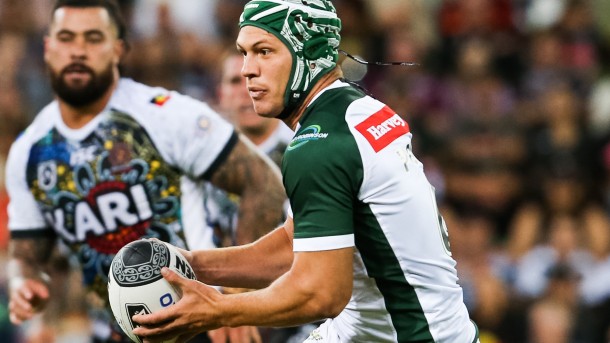 Roberts signaled the Indigenous response with a spiraling bomb shortly after, but with Peta Hiku cleaning it up pretty seamlessly it was clear that the Indigenous side needed to make a special effort to reclaim control of the game. Fifita now took a well-timed risk, sending across a one-handed offload during a tackle from Brad Takairangi and Tohu Harris that saw Jesse Ramien break into open space. Running the middle third of the field, Ramien hesitated and dummied for the briefest of moments, before booting it forward for one of his team mates to gather and ground.