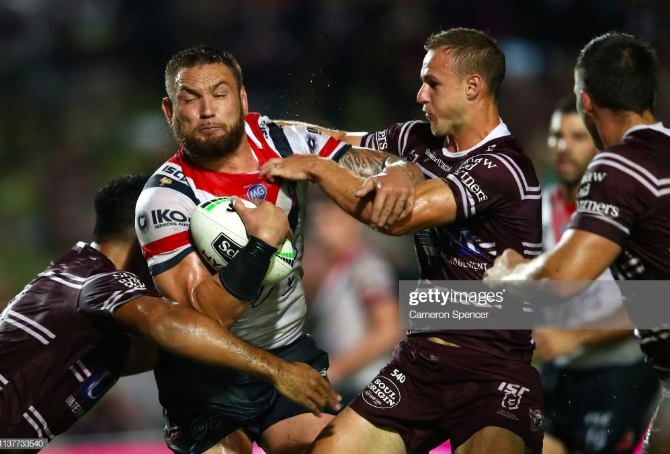 Manly were without Tom Trbojevic and Sydney City were without Cooper Cronk and Jake Friend when they met at Brookvale Oval on Saturday night, for a game that started with total decimation from the Roosters, but ended up more evenly paced after a fast finish from the Sea Eagles. A couple of minutes in, the home team got their first big chance when Joseph Manu lost the ball on the last play, but instead of diving on it, the Sea Eagles gave the visitors time and space to get six again.