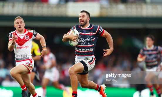 When the Roosters hosted the Dragons for their regular ANZAC Day fixture at the SCG they were on the cusp of a historical match. If they won, it would be their best start since 1999, and they burst onto the field with determination, with James Tedesco almost scoring in the first two minutes. Only an enormous effort from Zac Lomax held him up – twice – as Teddy writhed and wriggled in the kind of stranglehold he nearly always manages to escape.