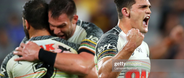 This was the perfect moment for the Eels to consolidate, and their forward pack made some big tackles on the next set, but a mistimed kick from Moses got Penrith some good field position a moment later, before James Tamou showed that he could rival Parra’s biggest barging runs on the fourth play. Still, this set also ended uneventfully, and a third penalty for the Panthers – this time a slow peel from Whare – got the hosts another burst of field position. As it turned out, however, this was the apex of the first stanza for the Eels, who made their first mistake shortly after –a lost ball from Clint Gutherson – and their first penalty immediately after that, as a second effort from Shaun Lane set up Edwards for the first quick tap of the game.