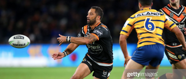 It was Benji Marshall’s 300th game when the Tigers hosted the Eels at Bankwest on Saturday afternoon, but Parramatta were clearly determined to ruin his big day. Maika Sivo made a big statement early on with a huge hit on Corey Thompson, while Blake Ferguson followed up with an enormous defensive effort to take Robert Jennings over the sideline at the end of the Tigers’ best attacking opportunity so far.