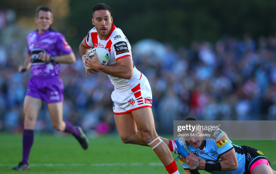 Embed from Getty ImagesThe Sharks couldn’t capitalise on Hunt’s absence, though, or even make the most of Moylan’s earlier surge on the set, especially in the halves, with Townsend showing the ball three times on the right edge before he was cleaned up, and Johnson kicking too deep on the last. This marked the start of a period of sustained St. George possession that mirrored Cronulla’s dominance in the first half, but the Red V were unable to make the most of it, despite Moylan leaving the field with a hamstring injury.
