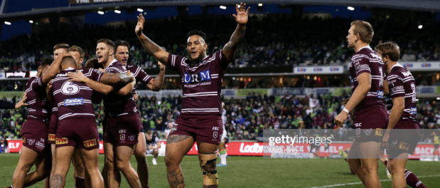 Embed from Getty ImagesYet the Sea Eagles held on, thanks in part to some incredible goal defence two minutes out from the siren, that culminated with a trysaving tackle from DCE on Whitehead, and a pack effort on Wighton that was also spearheaded by the Manly halfback. In the final minute of the match, the Raiders got their last set with twelve men in Canberra colours, after Morgan Boyle was sinbinned for a professional foul, having recently returned to the field after being taken off for a questionable HIA following a high tackle on Jordan Rapana earlier in the game.