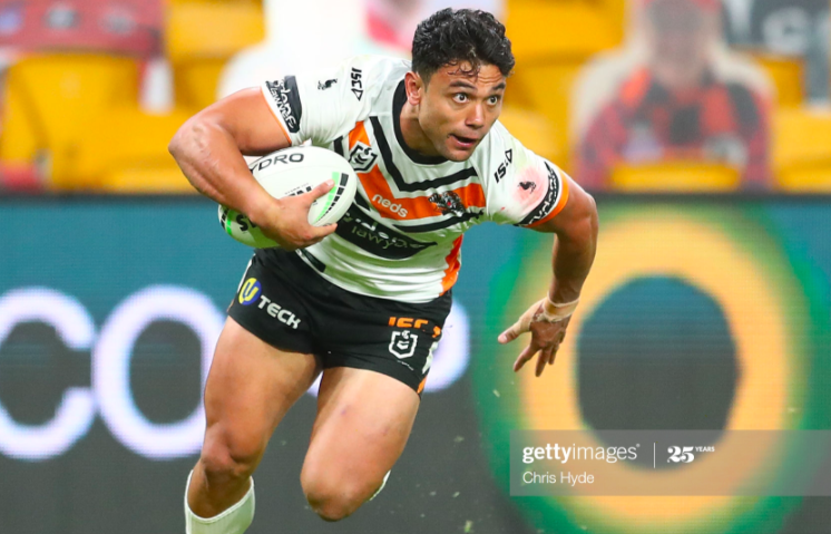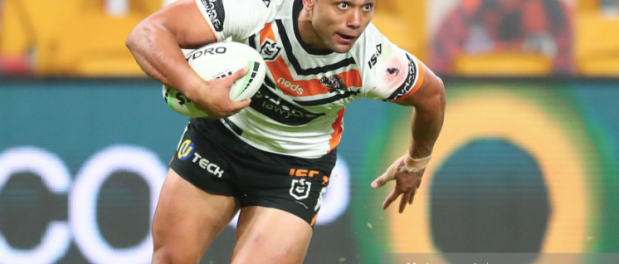 Embed from Getty ImagesNofa opted for a kick at high speed, getting the ball back inside just before Dale Copley bundled him into touch. Amazingly, Joey Leilua caught it on the full, placing down his first four points as a Tigers, to cap off a sublime sequence that seemed destined to guarantee the win to the home side, even thought it only got them a four point lead when Benji’s kick ricocheted away from the left upright. They got a fresh set of six at the start of the restart when Proctor was pinged for an illegal strip on Oliver Clark, before Billy Walters almost broke through the line on the third, and Brooks’ next kick was played at by Gold Coast, getting his men a fresh burst of field position. They really needed to score here to recover their two-try lead from the first half, so it was a big save for the Titans when Sami collected Brooks’ next kick and only just made his way back into the field of play. His team got another bout of field position after a Benji error, but lost it just as abruptly following a marginally forward pass from Erin Clark.