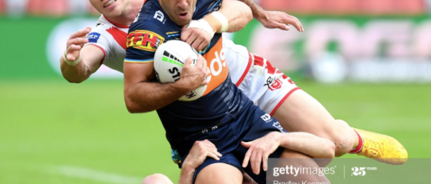 Embed from Getty ImagesIn the biggest letoff all afternoon, however, the try was called back for a forward pass. Finally, four minutes out from the end, Gold Coast got a consolation try, as Peachey tapped back a Taylor bomb for Boyd to slam over beside the posts bringing the Titans to eight points once Taylor made a pretty straightforward kick from in front. If Gold Coast could score on the restart they might just be back in the game, so it was a big comedown when Taylor lost the footy a couple of tackles in. Peachey took out the team’s frustrations with a dangerous hit on the next set, and Lomax missed his first kick of the night with the subsequent penalty goal attempt, forty seconds from the siren. They may have been playing the bottom ranked team, but this was still an emphatic win for St. George, who will be keen to make it a hat trick when they take on the Roosters next weekend, since a win against Sydney City would truly cement their journey back from their troubling start to the season. Meanwhile, this was a pretty dispiriting result for the Titans, especially after scoring two tries against the Bunnies, so they’ll be looking for a win when they meet an equally luckless Brisbane at Suncorp again next week.