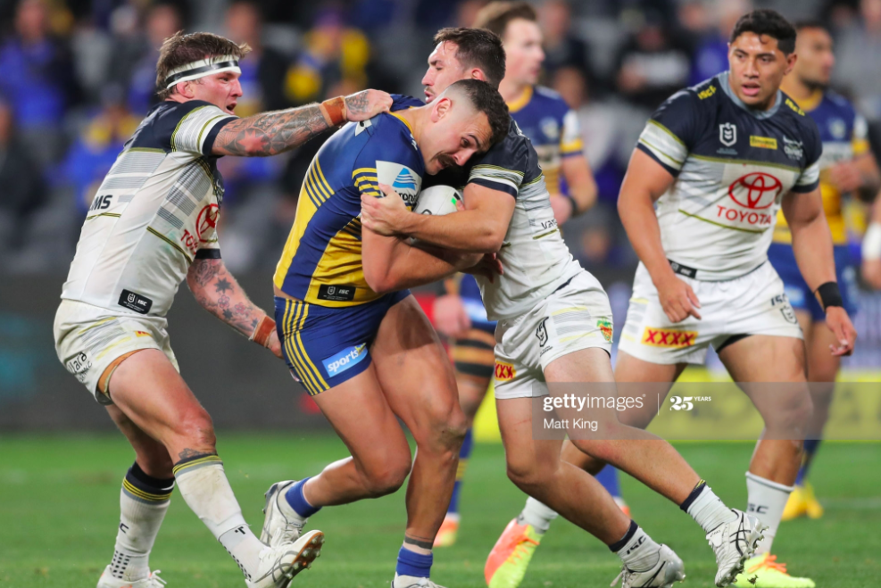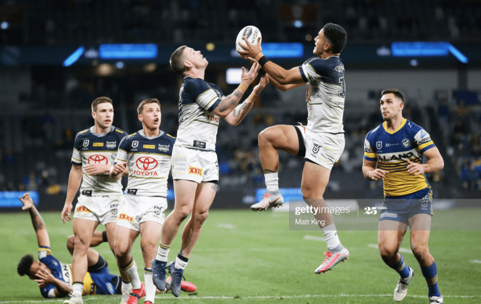 The Eels were playing their fifth game at Bankwest this year, and the Cowboys hadn’t won an away game since the resumption of play, when they met on Friday night in the west. Jai Field was replacing Mitchell Moses in the halves, Clint Gutherson was celebrating his century, and Valentine Holmes was back in the no.1 jersey, as both teams got stuck in for what would be another Parra blitz at Bankwest, despite a very dominant opening from North Queensland.