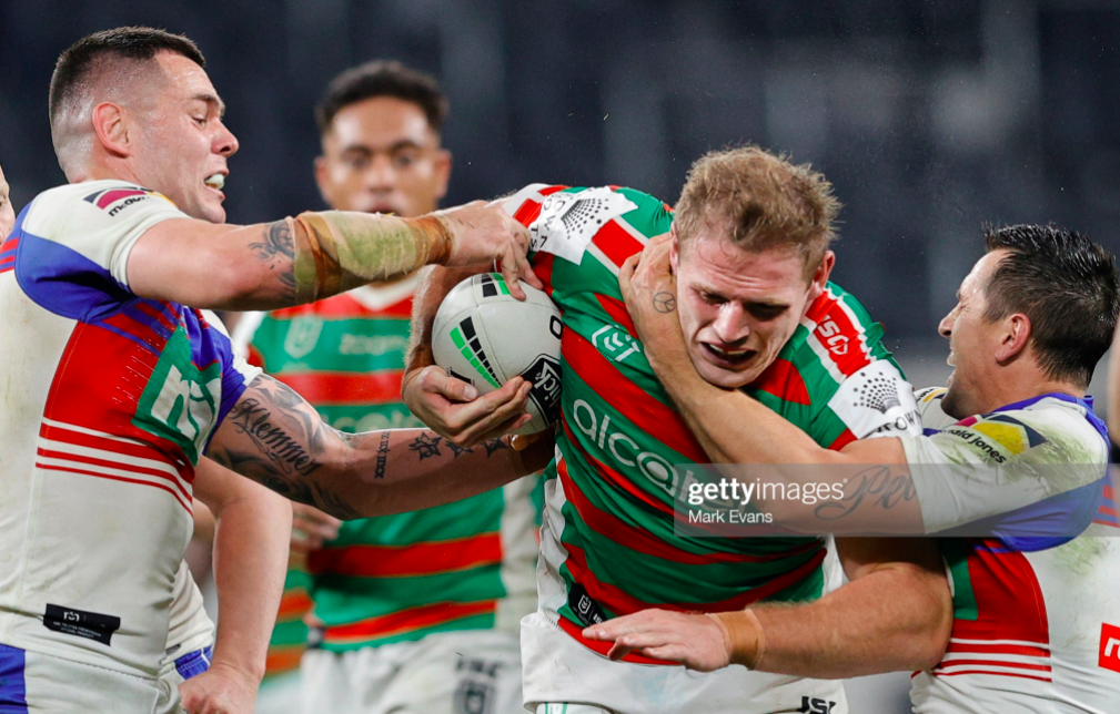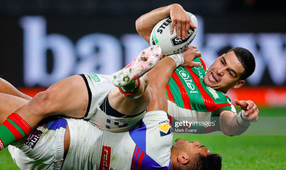 The replay was extraordinary in showing the strength and dexterity with which Tatola had retained control of the Steeden as he ricocheted from one Newcastle prop to another – and seeing this resilience in slow-motion was the final motivation that South Sydney needed to finally get into a tryscoring groove. Fifteen minutes out from the end Reynolds lost the ball cold, but the Bunnies proved why they lead the comp with intercepts a moment later, when Allan took the football straight back from Mann.