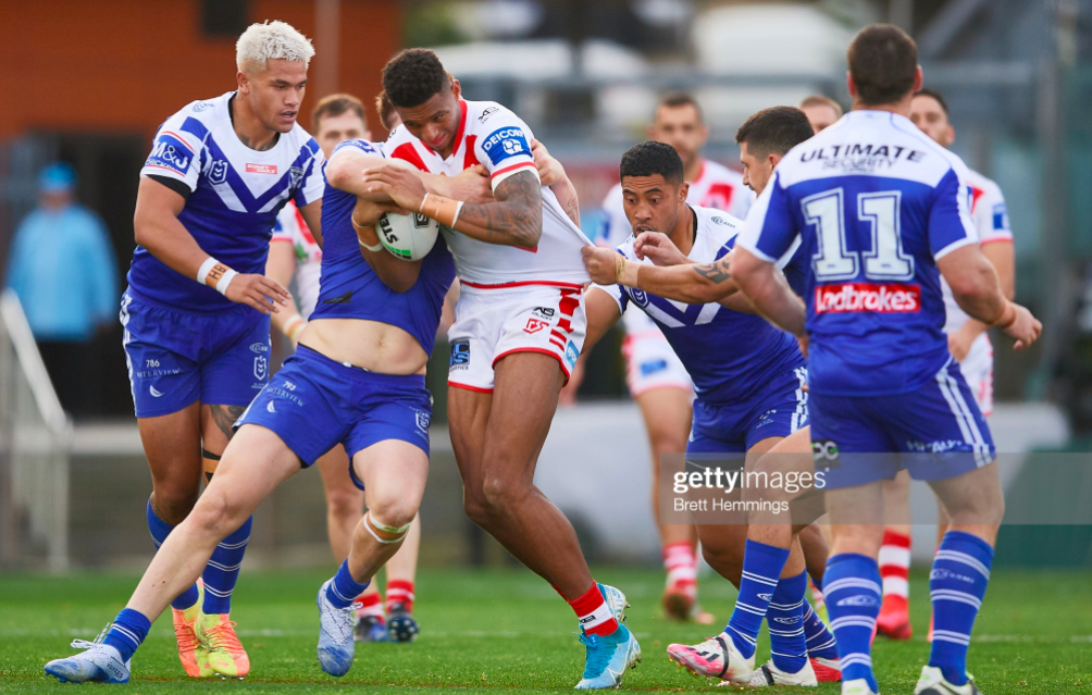 Round 10 tended to be characterized by lopsided games, but this was arguably the most exciting, as the Dragons started wth the fastest try of any team in 2020, dominating the opening quarter until the Bulldogs mounted a comeback that seemed to guarantee them the win until the last ten minutes, when St. George executed a second comeback, and Norman concluded with one of the freakiest tries of the season.