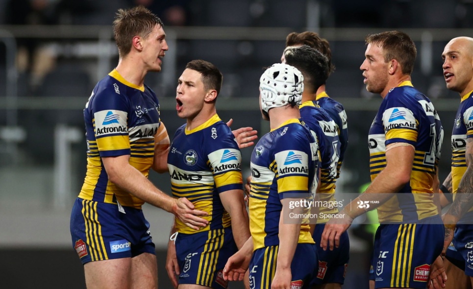 Thursday night’s showdown between the Tigers and Eels was the grudge match of the season for both teams, with Mitchell Moses back on the park and Ryan Matterson’s departing comments resurfacing in the media for only the third game between the two sides at Bankwest since Parra had christened their new home ground with a 51-6 win over Wests last year. The Eels were second on the ladder, the Tigers seventh, but the Eels were also coming off a surprise loss to the Sea Eagles, while the Tigers were presumably still pumped from their historic 48-0 win over the Broncos, meaning this could be anybody’s game, depending on how each outfit seized their respective opportunities. It started strong for the Tigers, with Russell Packer getting the first penalty on the second carry (a strip from Junior Paulo), and Harry Grant making a good run out of dummy half four plays later, before sending a flat pass for Luciano Leilua to get on the outside of Matterson and smash into Reed Mahoney, hanging perfectly in the tackle to get the footy down. Benji Marshall kicked on the third play of the next set, and the Eels had their first touch of the football, as Maika Sivo tried to make up for lost time with a bullocking run two plays later.