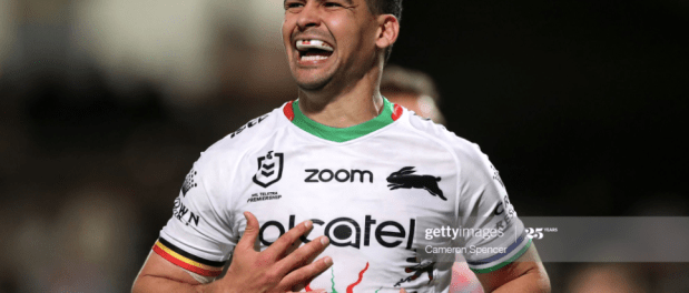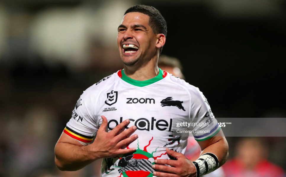 From the speed of the putdown, to the strength evident in the face plant, to the roar of release as he raised himself up from the turf, this felt like a genuinely cathartic moment for Latrell after the turmoil of the last six months – a passionate moment of selfhood in the midst of Indigenous Round that was cemented further when he booted the conversion off the uprights to level the scoreline at 16-16 on the cusp of half time. Souths got rocking again after the break with a successful Captain’s Challenge that proved Murray hadn’t stuffed up the play-the-ball, while Keaon Koloamatangi crashed over beside the posts a minute later for what would have been his first NRL try if there hadn’t been an obstruction. The Bunnies were hungry for points, though, and made the most of a weird Norman kick that went out on the full, responding with a left sweep that ended with Walker drawing in Lomax with a cut-out pass across Latrell’s chest to Dane Gagai, who sent Johnston across on the wing to put South Sydney ahead for the first time. They got another restart on the restart, and looked dangerous in every part of the field, but Dufty came up with the ball at the end of the set.
