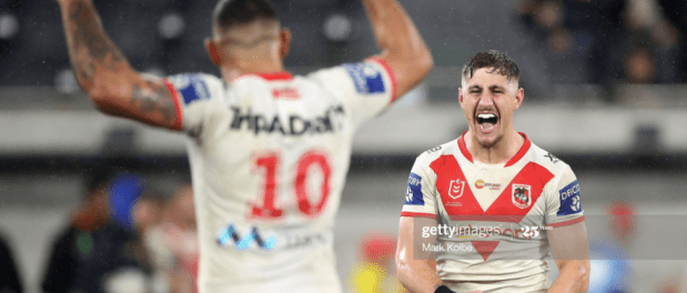 Cometh the hour, cometh the man, as Ravalawa now darted across the back of the posts, bumping off several defenders before offloading out of a Fergo tackle, in his own in-goal, for Pereira to get the Dragons out of the dropout that could have quite easily lost them the game. This was the ultimate clutch play, and a rousing way to send out Mary McGregor, whose emotion was palpable as he congratulated his men for the last time as St. George-Illawarra coach. It’s a new era for the Red V, then, when they take on the Broncos at Suncorp next week, while the Eels looked slightly stunned by only their third loss of the season, and will be looking for a big one when they play Melbourne in the Thursday night sequel to this week’s Roosters-Storm blockbuster.