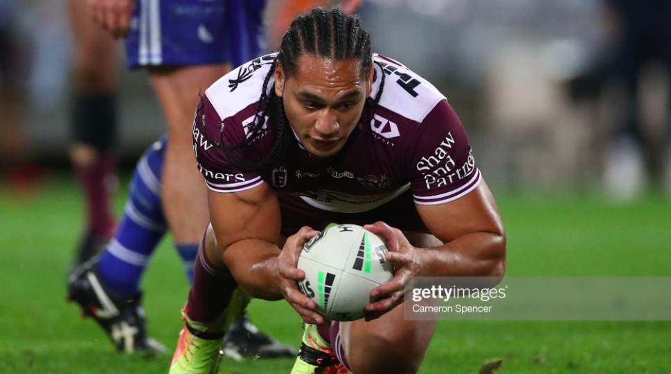 This was a big let-off for the Sea Eagles, and they accelerated on the next set, thanks to a big run down the middle from Addin Fonua-Blake, and an equally good carry from Taupau, who offloaded out of a two-man tackle for Funa. For a moment Funa looked set to break through the line, but was downed by an ankle tap from Jackson. He did manage to offload before he hit the turf, where DCE got a boot to it, but Jayden Okunbor was there to clean it up, and the Dogs scored off this next bout of possession.