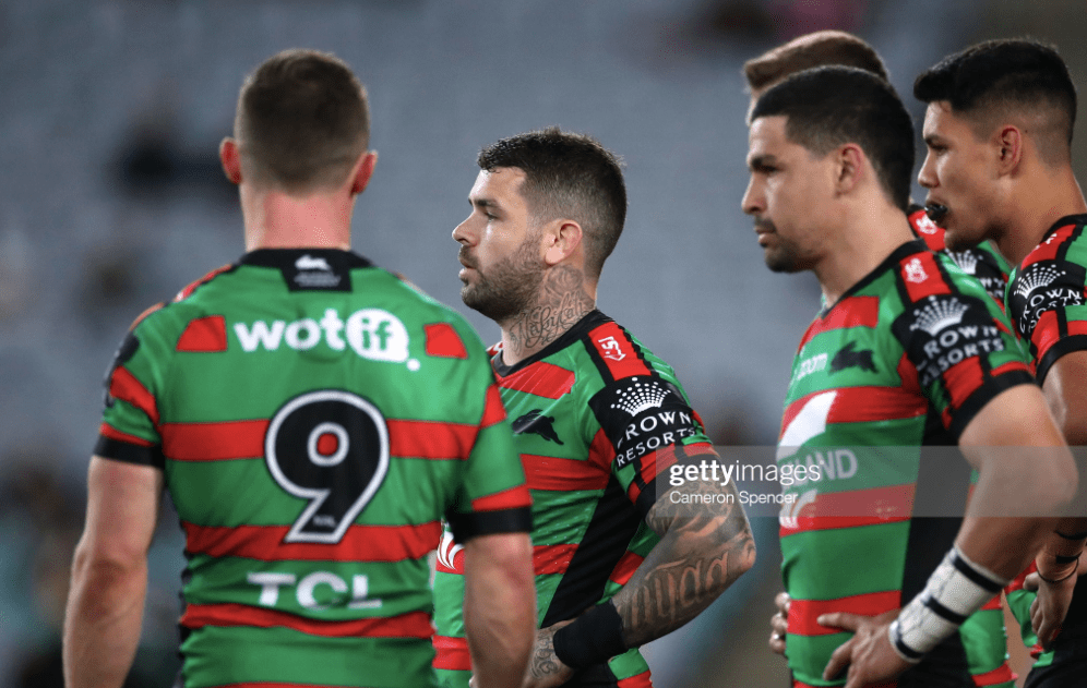 Souths channeled the speed of this set when Murray brought the footy right to the line – and channeled the misplaced speed when Burgess got too eager a play later. Receiving a short one from Cook, the big man pivoted around an ankle tap from Tolman, and twisted through a combined tackle from Lewis and Jackson. He should have ended it there, but reached out his right hand and lost the footy in the process.