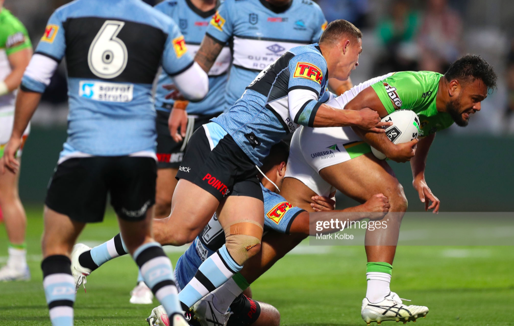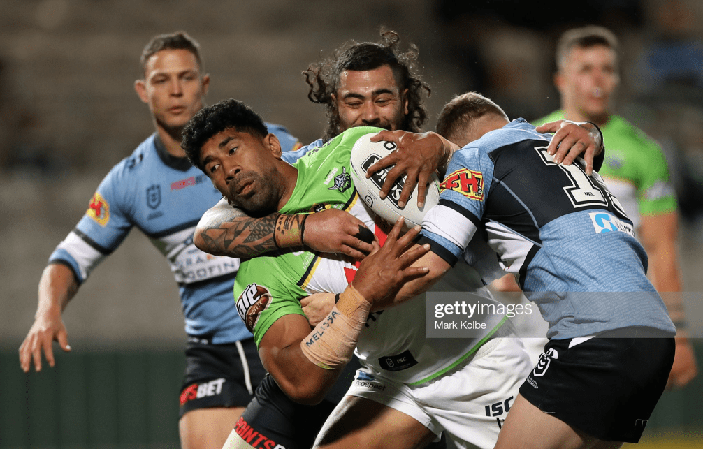 The Raiders won by ten when they faced the Sharks for their last clash of the regular NRL season, with both teams scoring high despite being without their regular spines on the cusp of finals footy. Nick Cotric did well to handle an awkward kickoff, and Iosia Soliola took his first tackle in 87 days, showing no signs of his facial injury as he ploughed into the defence. With Ronald Mulitalo putting down the ball on tackle one, the Raiders had an early advantage, and made the most of it.