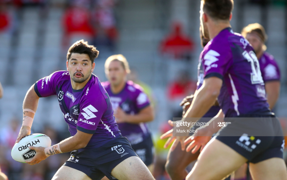 With Lomax adding his second conversion, the Storm had scored four tries to two, but only led by four as the game settled into a fast finish in the last two minutes before half time. First, a dazzling run and offload from McInnes got Dufty through the line, and while Lumelume somehow got the footy first, he still conceded a dropout on the brink of the siren.