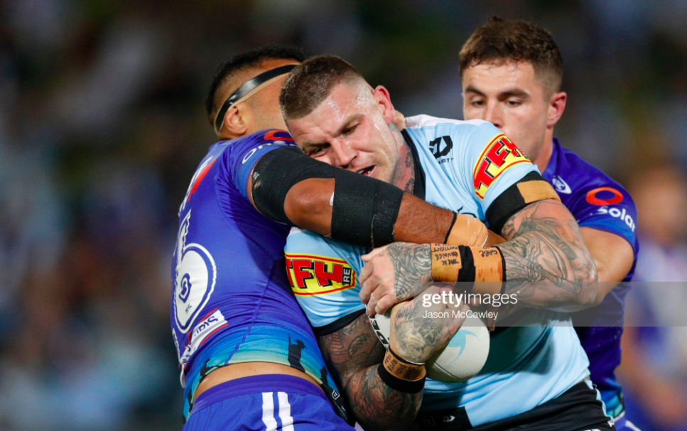 Yet that just made it all the more deflating when the try was denied due to an obstruction from Nikora, who’d hit the outside shoulder of Flanagan in backplay. Things got even worse a set later, when the Sharks got some additional field position off a dangerous shot from Flanno, who seemed especially aggressive after Nikora’s effort. Townsend shot out a brilliant harbour bridge ball to Tracey, who somersaulted over the tip of the footy behind the line, only to put a boot on the sideline beforehand.