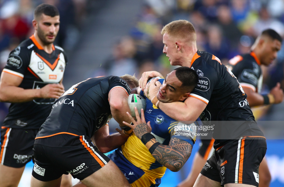 From one perspective, the Tigers were on a bit of a roll when they rocked up to play Parra at Bankwest on Sunday afternoon, having won three of their last four matches, and their last two straight, over Penrith and St. George. Yet they’d only won three in a row four times since they played finals footy back in 2011, while Parra were looking for seven straight over their western rivals, who had never beaten them at Bankwest, and never got closure after the bloodbath that christened in their new shared home ground.