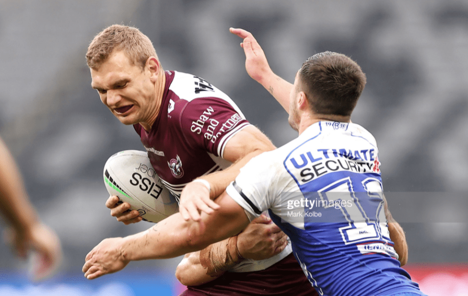 Trent Barrett and Des Hasler were both coaching against their former clubs when Manly rocked up to play the Bulldogs at Bankwest on Saturday afternoon. The Sea Eagles only needed to win this game by twelve to beat the Roosters for fifth on the ladder but Daly Cherry-Evans’ impassioned speech in the sheds before kickoff made it clear they were going for a much bigger margin. Fuelled by the disappointment of an Origin loss, DCE galvanised his men into a stunning 66 unanswered points, including hat tricks for Tommy Turbo and Jason Saab.