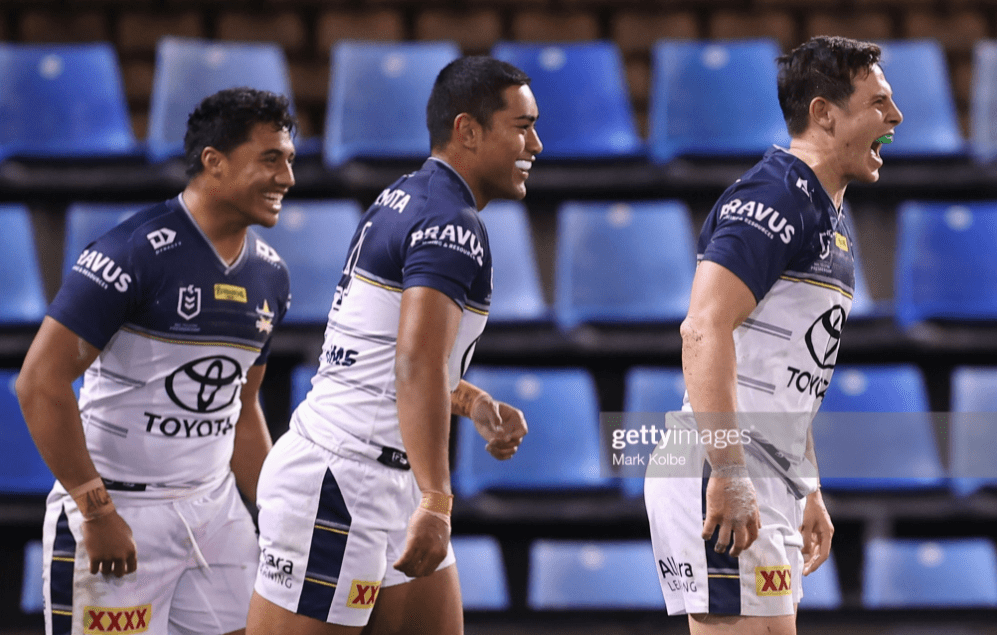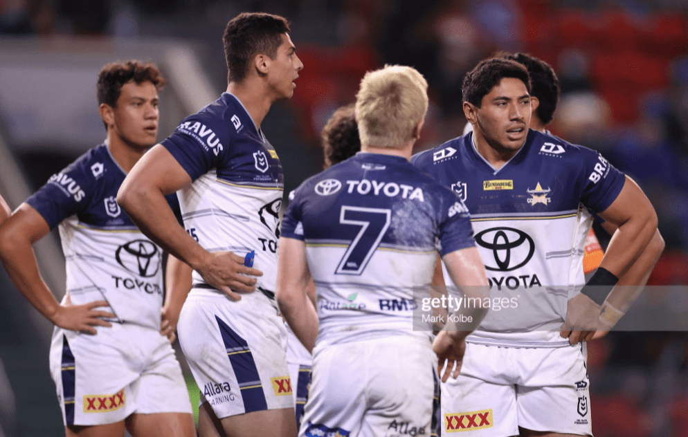 On the other side of the Steeden, the Cowboys had lost 38-0 at this same venue the week before against a rollicking Knights outfit. They had six wins and nine losses to show for their season, but they hadn’t beaten a top eight team, and weren’t as confident in their spine, with Tom Dearden playing his fourth game in North Queensland colours, and Scott Drinkwater periodically moving out of his five-eighth designation to assist Daejarn Asi with fullback duties.