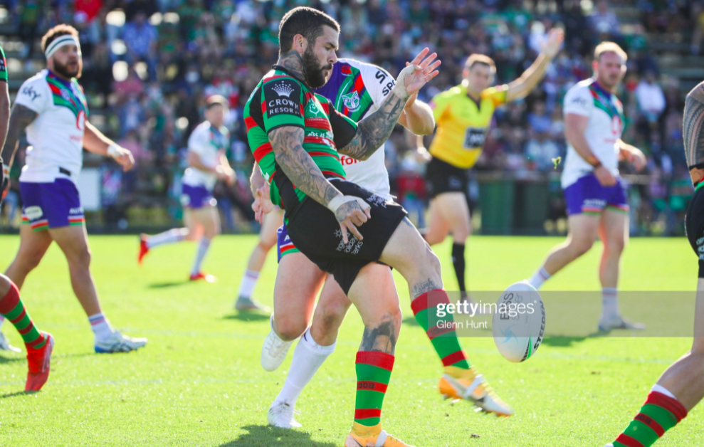 The Warriors needed to get creative – and they tried on their next set, but couldn’t quite get the combination right. DWZ offloaded to Katoa early in the tackle count, when he would have done better to just run the footy, as he seemed to acknowledge by barging straight up the middle when he took a second carry. Walsh ended with his third overlong kick of the night (although he got a bit unlucky with the bounce) before Jai Arrow made his first appearance since his Origin indiscretion, and took a couple of strong runs to get South Sydney up the park.