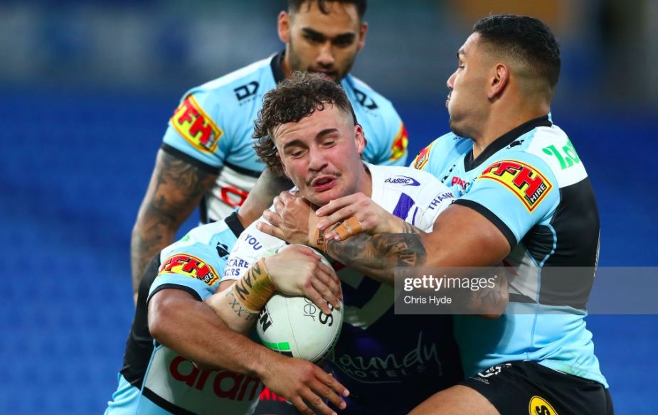 They got their first restart early in the next set, when Aaron Woods infringed the ruck, but didn’t do much with it, since Ava Seumanufagai put down a JMK pass out of dummy half a few plays later. The Sharkies now started elasticising, as Nikora made the first offload of the afternoon out the back to Shaun Johnson, Ramien busted through a Luke Thompson tackle and Braydon Trindall improvised a kick on the go. Unfortunately, it wasn’t well timed or placed, meaning Nick Meaney was able to take it on the full without any real chase pressure.
