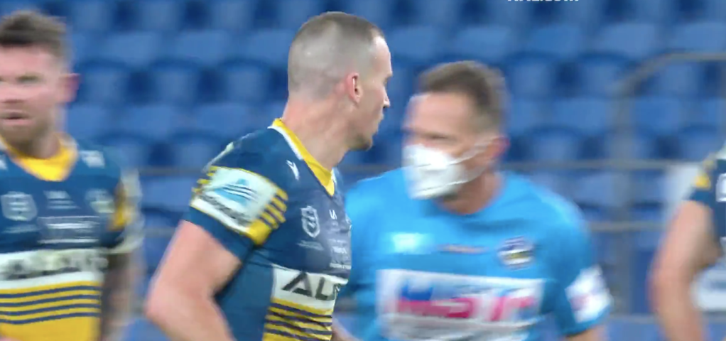 Moses looked truly animated for the first time as the final quarter arrived, barking out orders to his men, and involving himself more in the organisation of play. That seemed to galvanise the Eels on their next touch of the footy, when Gutho responded with some searching footwork on the first tackle, and Moses ended with yet another bomb to Mansour, who took it clean, but was clearly starting to feel the burden of all these high balls directed at his wing.