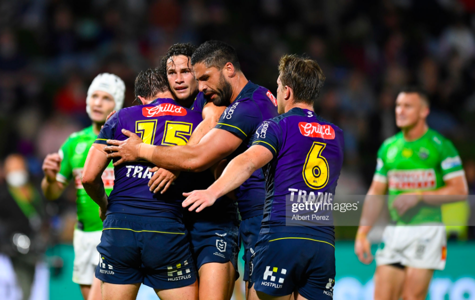 Thursday night’s game at Kawana Waters welcomed live audiences back to the venue – and they got a treat with one of the closest and clutchiest finishes to a top eight clash in some time. The Raiders were back in the eight for the first time in ten weeks, after winning four of their last five, while the Storm were edging closer to the Roosters’ nineteen straight wins of 1975. With a victory here, the purple army would be four premiership points ahead of the Panthers, and that much more confident of a grand final berth at the end of the year.