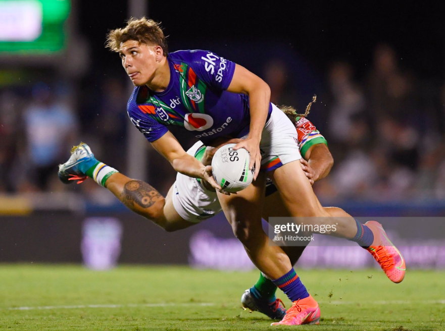 This sequence felt just as motivating – a DWZ tap-back to Egan, who offloaded for a Rapana knock-on – so it wasn’t surprising that the Warriors shifted it straight to the right corner out of the scrum, as if squaring the circle between these two wing plays. Walsh also reprised the mad dash at the wing that had looked so powerful when it came out of dummy half ten minutes before, and while his pass didn’t quite reach Montoya, Frawley was deemed offside.