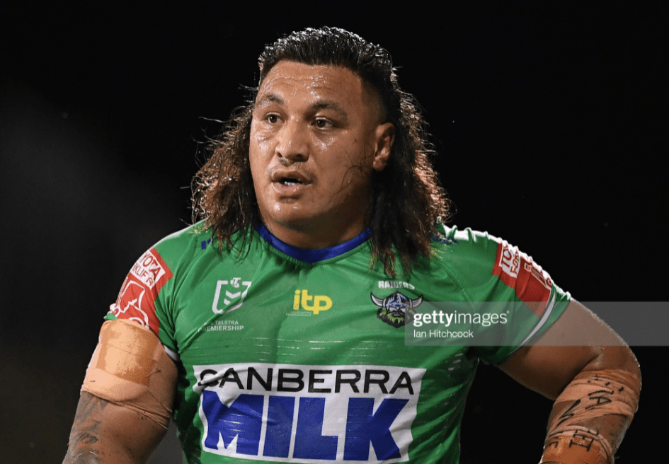 Their other big men stepped up here too, as Ryan Sutton charged hard beneath the crossbar, where he promptly lost the ball – such a critical break in momentum that the Raiders sent it upstairs, in an effort to prove that Curran had stripped it on the ground. The replay showed that Curran had simply been trying to return to his feet, and that Sutton’s grip was loose to begin with, as the Raiders steeled themselves for another New Zealand set, well aware of how this had turned out last time they were packing the scrum, albeit at the other end of the park.