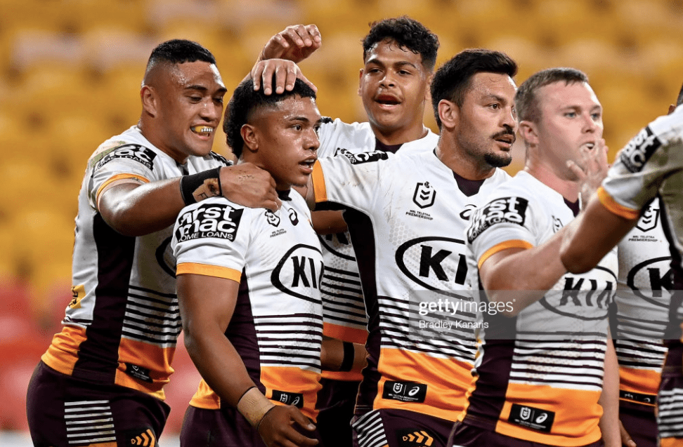 This was arguably a tough call, since Moylan was still wrapped around Milford’s legs when he tried to play the ball, but the Bronocs didn’t suffer from it, as Katoa got another disappointment on the wing, when Kennedy came to ground, and hesitated just a little too long before shooting out the offload, which careened over the sideline as Brendan Piakura came on off the bench for his long-awaited NRL debut. He was the 36th Brisbane player to hit the park this year – the most men any team has deployed since the Cronulla outfit of 2014.