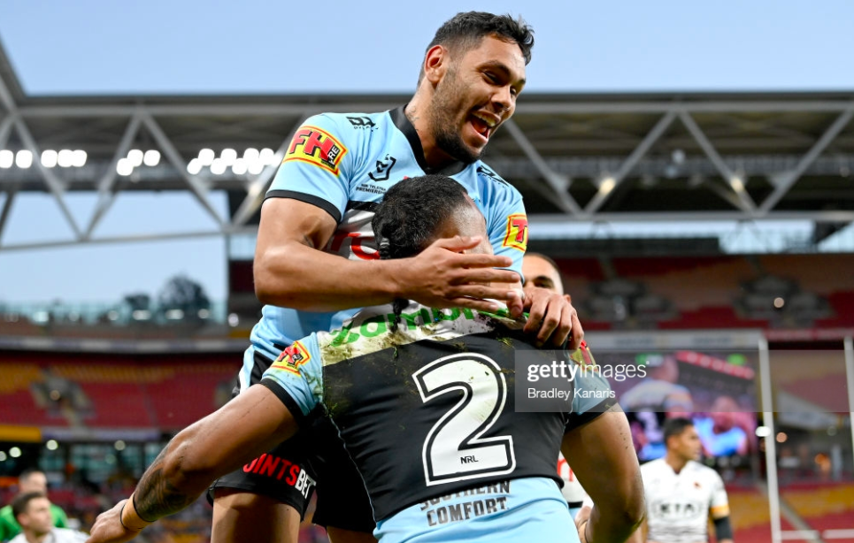 Once he was there, Connor Tracey came up with one of the clutchier runs of the Sharkies’ season, coming up hard and fast on the left, and even then only just taking the low ball from his winger. He hit the ground just shy of the line, but relied in part on the Coates tackle to take him over the chalk. Trindall added the kick – and in one single run, and one individual play, Katoa had managed to regather and galvanise his team mates on the cusp of half time.