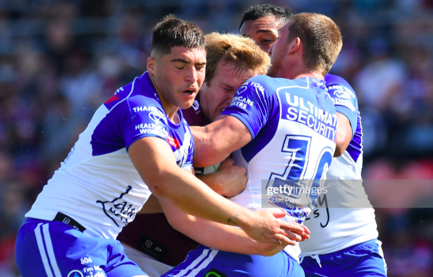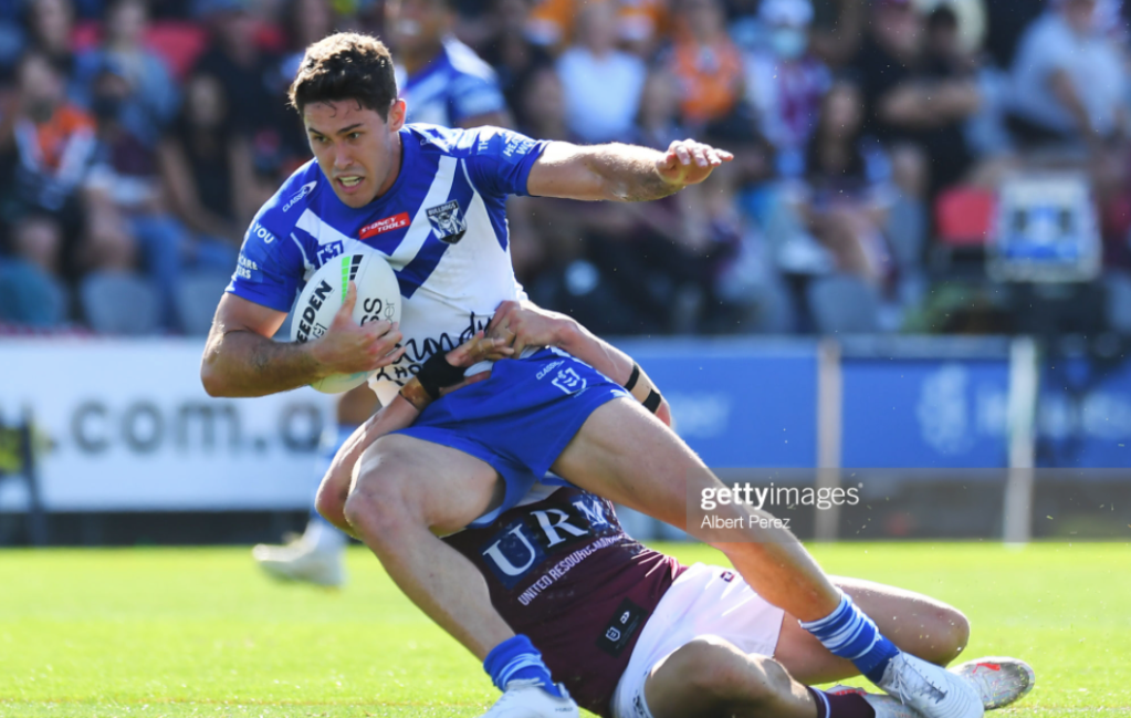 Yet the Bulldogs now got one of their best tries in years – or at least one of their most spectacular. After his team had failed to deal with the kick convincingly throughout this second half, Jackson Topine chased down the kickoff, took it at speed, and plunged over the line, pulling the rug out from under Manly so efficiently that this would have been a genuine game-changer if there were even ten minutes more play. On top of that, it was his debut try – and few NRL players have put down their first four in such an unusual and flamboyant way.