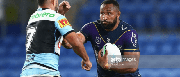 They also had a better restart, ending with a soaring Trindall bomb that forced the Storm to work that little bit harder for territory when they got the ball back. In fact, they had the best state of flow for either team so far, although the thing about flow is that one team can easily steal it from another with a sudden error – and that’s what nearly happened when Moylan showed his rustiness with a unforced fumble early in the next Cronulla set for a Storm scrum.
