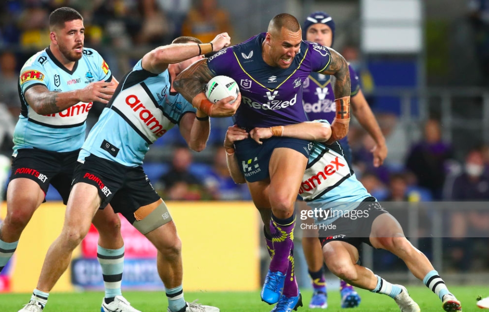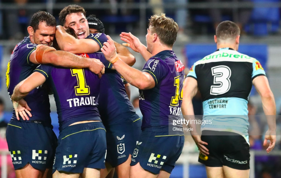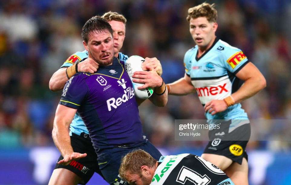 Melbourne and Cronulla were at opposite ends of the ladder when they met at Cbus on Friday evening – the Storm on top, the Sharkies on eighth. A win here would secure a finals berth for the Sydneysiders, and they could still make it if the Titans lost to the Warriors the next day as well. They were playing for their seventh finals appearance – an achievement in itself given they had only two wins in the first ten rounds of football – with Matt Moylan starting in the five-eighth jersey for the first time since Round 15 to give them an extra boost.