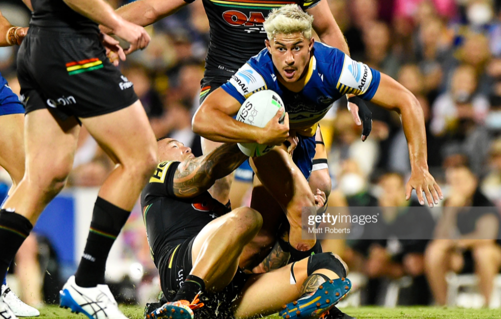 It came after a perfect kick that trapped Gutho right in the corner, just when the Eels needed a big play to take them out of their own end – a fumbled play-the-ball from Stone, who became the worst casualty of the slippery Steeden and humid conditions. In any other game, a Pangai-Sorensen offload right on the line would have done the job now, but Niukore was in place to swing a big arm straight into the ex-Shark, who was taken off the field. Niukore was put on report for a second time, but it was probably worth it, since this was a true trysaver.