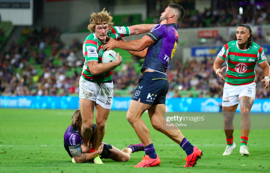 Thursday night’s match between Melbourne and South Sydney will stand as one of the great arm-wrestles of 2022 – an extraordinary game of two halves in which the Storm put down fourteen unanswered points in the first forty, and the Bunnies did the same in the last twenty, bringing the finale to golden point, when a Ryan Papenhuyzen field goal sealed the deal. In spirit, though, this felt like a Rabbitohs victory, and their first decisive statement of the post-Adam Reynolds era; a scintillating prelude to their match against the Roosters in Round 3.