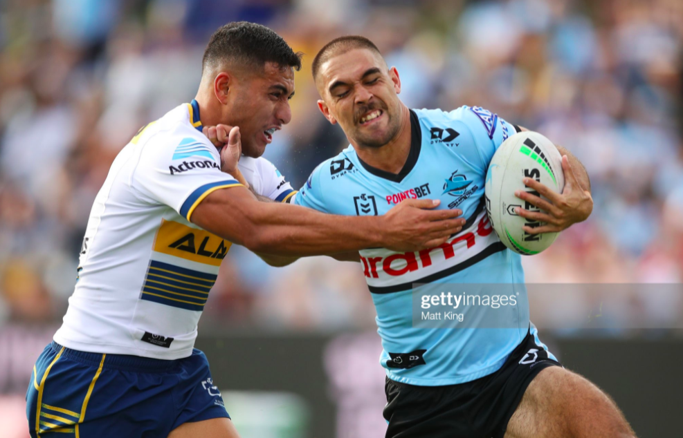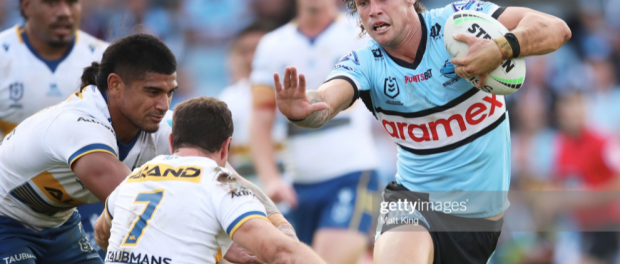 Junior Paulo took the first run of the afternoon, and the Sharks crowded in to prevent Parra crossing the halfway line, as Mitch Moses booted his first kick just over his own forty. Conversely, Dale Finucane was in Eels territory by tackle four, while a Hynes kick and Will Kennedy chase forced the visitors to work it back from their own line. Luckily, Clint Gutherson was confident with the catch, but even then the blue and gold struggled to make field position, with Moses now kicking from inside his own thirty as Cronulla swarmed his men.