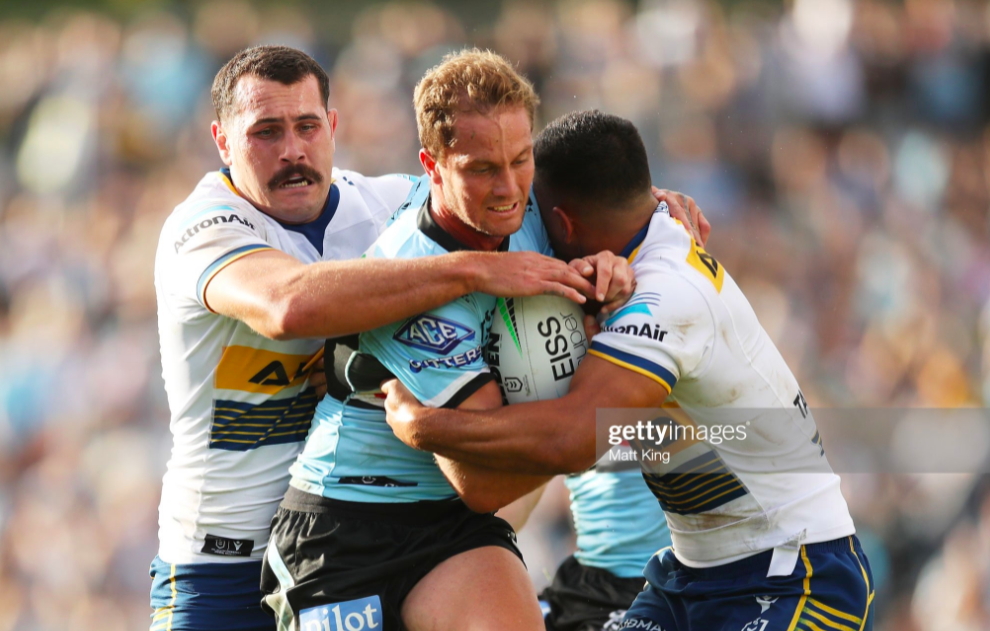 The Sharks dominated the first forty, starting with a superb try from Ronald Mulitalo, who wouldn’t return from the break after sustaining a head clash while shutting down a Bailey Simonsson charge on the wing. For a moment, it looked like Cronulla had capped off that opening stanza with their best goal line defence of the year, as they thwarted Parra in three sets within the ten, five minutes before the break. Yet that just made it all the more dramatic when Mitch Moses set up a dazzling spine try on the very cusp of half time.