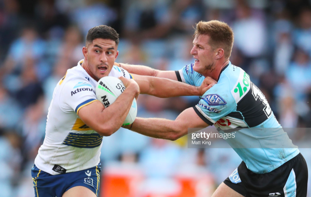 That all made for an intriguing prospect over the back half. Cronulla had dominated the opening stanza, and survived three straight sets in their own ten, but the Eels’ spine had bounced back with arguably their best single sequence of the year so far. The Sharks had the breeze at their backs when they returned to the park, as Finucane took his tenth run of the night, and Fifita managed a deft offload for Nikora. Even so, Hynes had to boot it from his own forty, while Nathan Brown broke the halfway line four tackles into Parramatta’s first set.