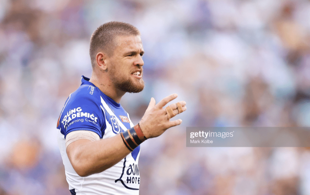 Reynolds took the kickoff and Paul Vaughan the first carry, before Pangai got an early offload away for Josh Jackson to break the ten. The Canterbury captain took another run on tackle three, ferrying the footy beyond the thirty, and Selwyn Cobbo brought Matt Burton’s kick back at speed to dodge a pummelling Pangai hit but still made serious contact with Corey Waddell. Matt Dufty was safe beneath Reynolds’ first kick and the Dogs got the first penalty when Kurt Capewell followed his match-winning field goal with a swinging arm on the Foxx.