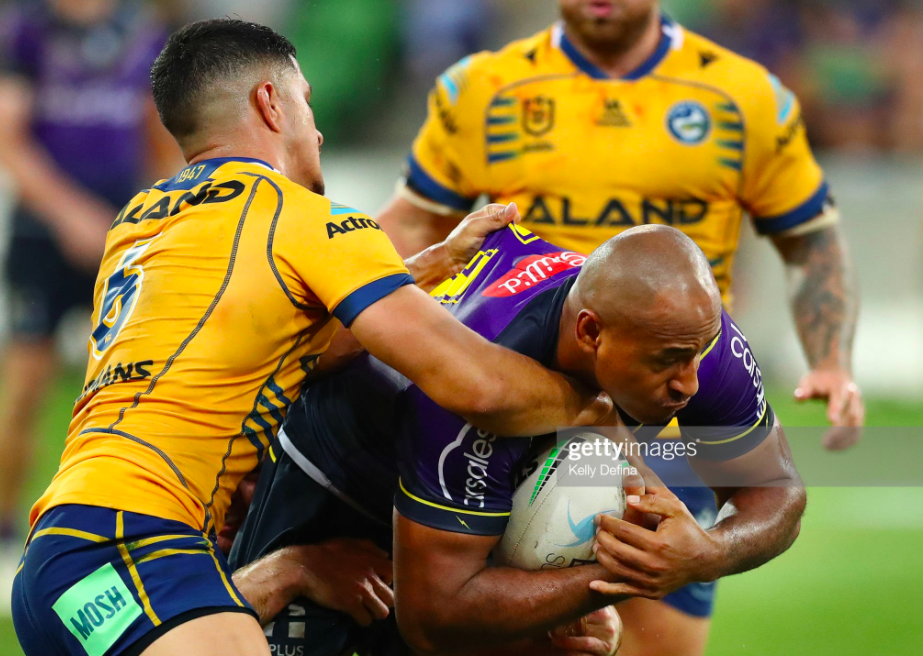 Parramatta had their first try since the break, and had levelled the score once more as Moses booted through the front-on conversion as Gutho barked out orders to his troops. A win in Melbourne can be a massive motivator at the start of the season, so the Eels had to build more momentum on the restart, and Paulo got them rolling by barging ten metres through NAS, in revenge for the big prop’s painful contact on his outstretched leg a few minutes before. The Storm survived, breaking their own end with a sublime Munster-Paps offload.