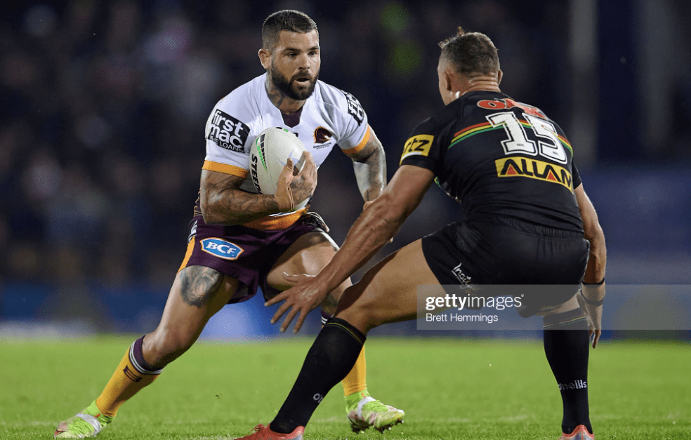 An unforced error from Riki prevented the Broncos capitalising here, and got the Panthers seven tackles, which Edwards started with a strong carry to muscle his way back from conceding the aborted dropout. Fish plunged up the middle two tackles later, reaching the ten and getting his men six again in the pocess, before Leniu built on all that rapid acceleration by slamming down beneath the posts, and rising to his feet so amped up that the try seemed to usher in a new superhuman standard for Penrith, who made it a cool 34 with Cleary’s kick.