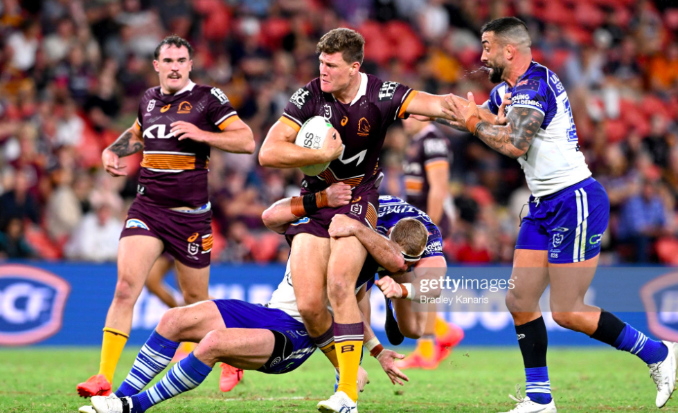 Payne Haas wasted no time cementing his return by taking the opening carry, reaching gingerly to his left shoulder as he rose tentatively from the turf, but apparently fine as the set got going. Likewise, Tyson Gamble did well in his first run in this current five-eighth stint, winning a Josh Jackson offside to get the Broncos a set within the thirty, where Haas took the opening run once again. He almost reached the red zone, and even then required three Bulldogs to shut him down, before Gamble shone again with a strong run down the short side.