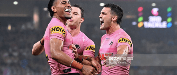 Penrith used their brutal loss against Parra to propel them into one of their best wins of the season at Suncorp on Saturday night, beating their biggest ever victory over Melbourne (36-16) to come away with an astonishing 32-6 margin. In part, that was attributable to the absence of Reimis Smith, Jahrome Hughes and above all Ryan Papenhuyzen, since Tyran Wishart had a fair few wobbly moments at stand-in fullback, after Nick Meaney was named earlier in the week for the no. 1 jersey only to be reallocated to the wing.